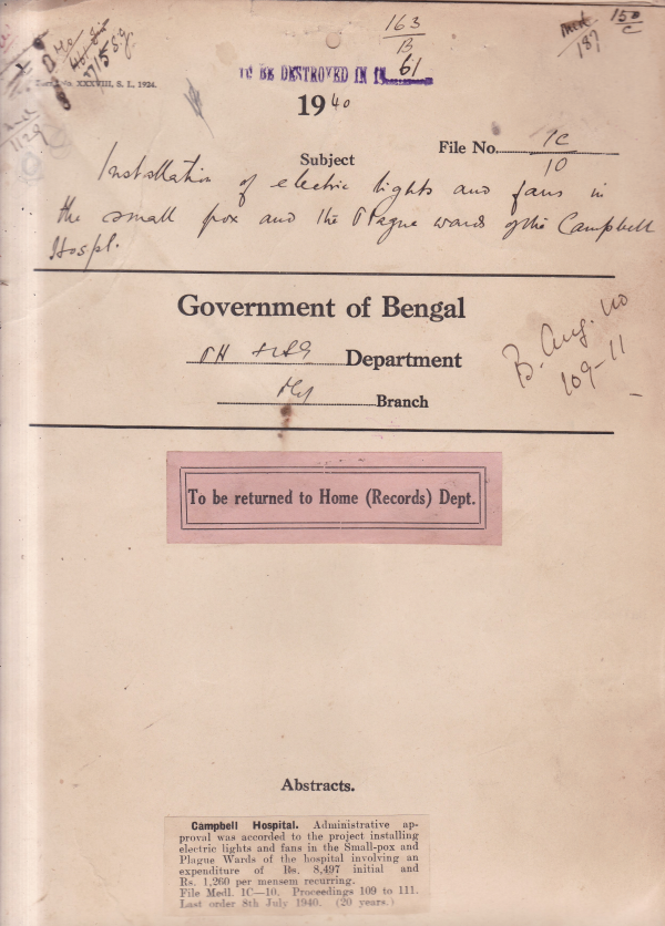 Installation of electric lights and fans in the Small-Pox and Plague wards of the Campbell Hospital.