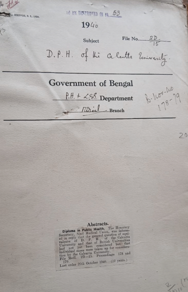| Rack No. 8, Bundle No. 78, Sl No. 6017 Recruitment of additional staff for S.G's officer as a war measure. | Rack No. 8, Bundle No. 78, Sl No. 6018 Statements showing the particular of stores purchased in India by the officers of the Medical Department during 1939-40. | Rack No. 8, Bundle No. 78, Sl No. 6019 Instruction regarding payment of bills in favour of enemy firms. | Rack No. 8, Bundle No. 78, Sl No. 6020 D.P.H. of the Calcutta University. | Rack No. 8, Bundle No. 78, Sl No. 6021 Estimate for constructing racks in the Civil Court room at Maijdi. | Rack No. 8, Bundle No. 78, Sl No. 6022 Extension of tenure of appointment of Dr. U.P. Basu, Honorary visiting physician Medical College Hospital. | Rack No. 8, Bundle No. 78, Sl No. 6023 Recruitment in B.M.S. (Upper), Case of M. Islam. |
