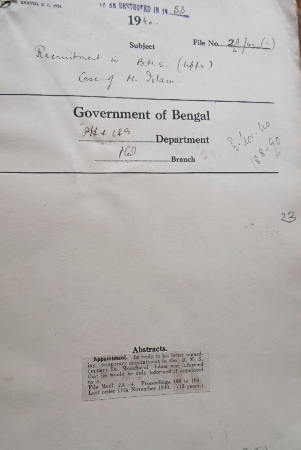 Recruitment in B.M.S. (Upper), Case of M. Islam.