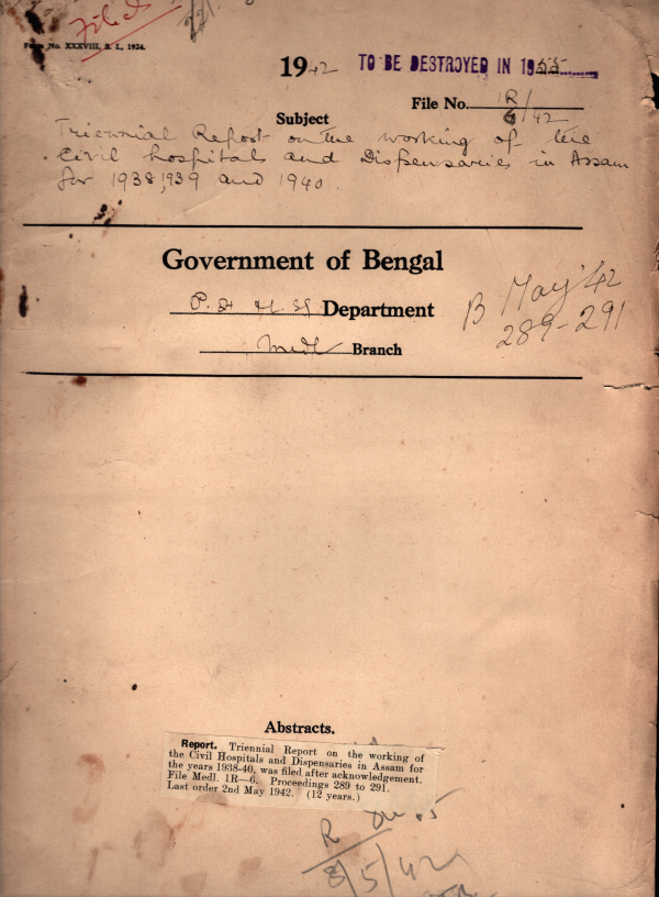 Triennial report on the working of the Civil hospital and dispensaries in Assam for the years 1938-40.