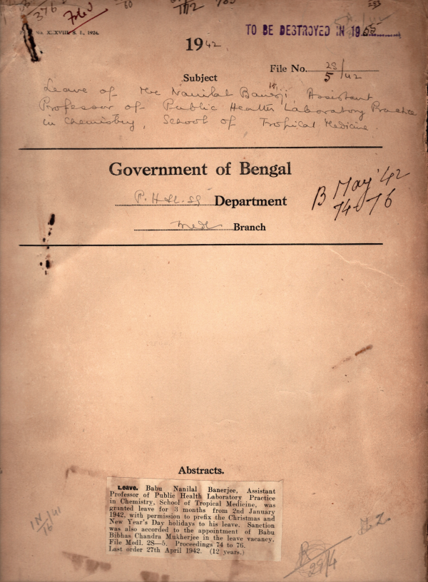 Leave of Mr. Nanilal Banerjee Assistant Prof. of public health Laboratory practice in Chemistry School of Tropical medicine.