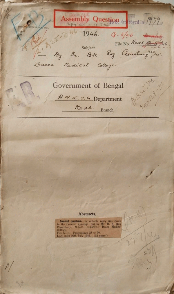 C.Q. by M. B.K. Roy Chowdhury M.L.C. regarding Dacca Medical College.