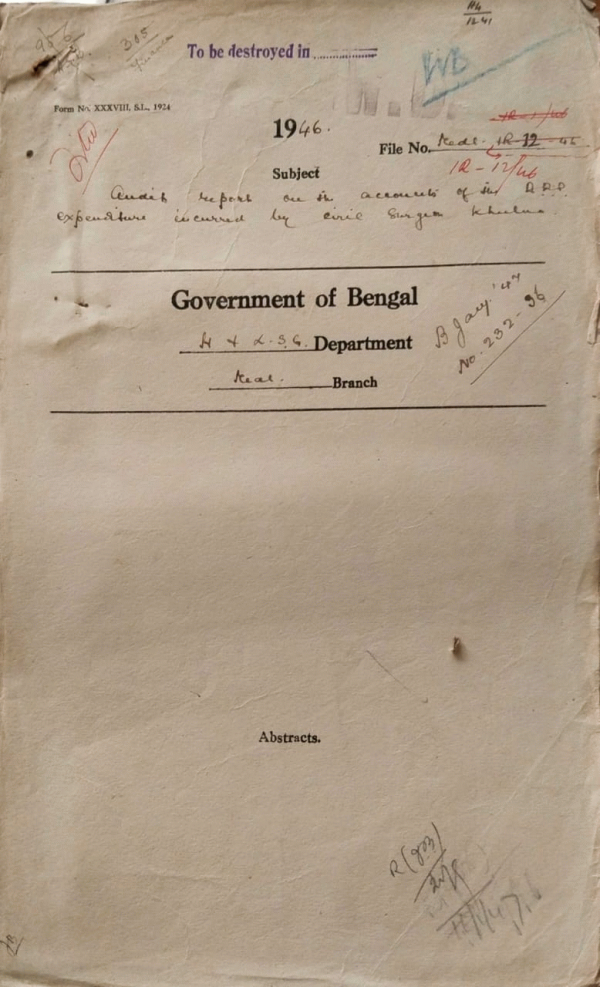 Audit report on the accounts of the A.R.P. expenditure incurred by the Civil Surgeon, Khulna.