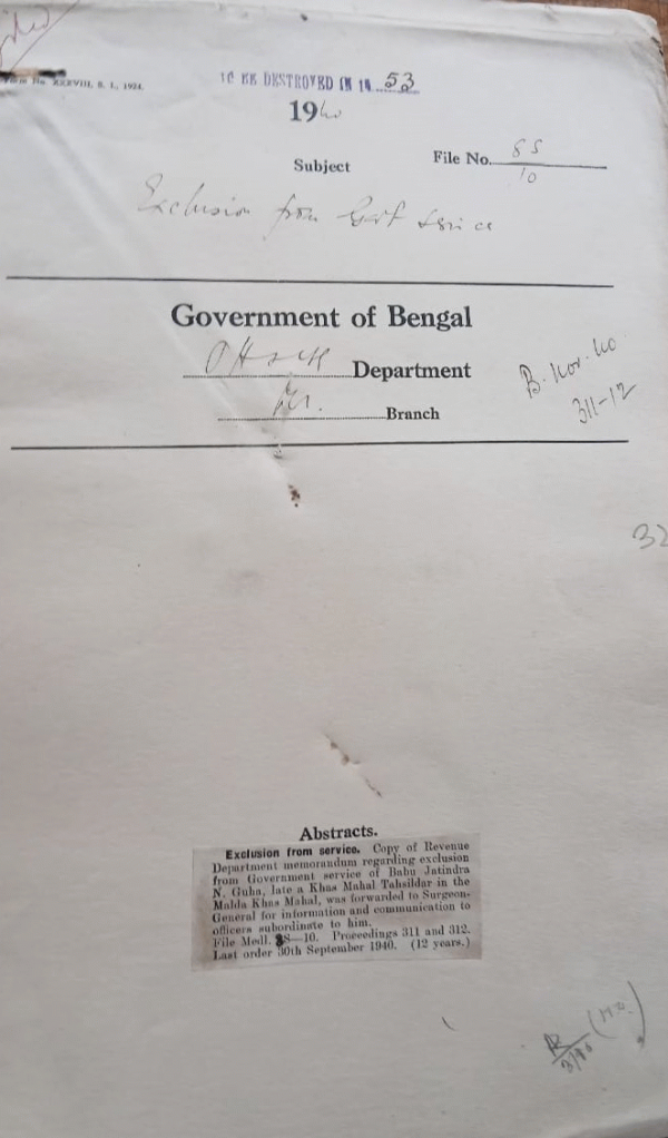 | Rack No. 8, Bundle No. 78, Sl No. 6029 Diet Scale in state Hospital. | Rack No. 8, Bundle No. 78, Sl No. 6030 Purchase of Type Writers. | Rack No. 8, Bundle No. 78, Sl No. 6031 Memorial of Babu Narendra Kumar Chanda, Store Clerk, Mitford Hospital, Dacca. | Rack No. 8, Bundle No. 78, Sl No. 6032 Exclusion from Govt. Service permission to Mr. J.V. Bowner. | Rack No. 8, Bundle No. 78, Sl No. 6033 Permission to Mr. J.V. Bowner, wardmaster P.G. Hospital to apply for an emergency commission in His Majesty's Land Forces. | Rack No. 8, Bundle No. 78, Sl No. 6034 Employment of two night watch men to patrol the whole compound of the Medical College, Calcutta, during the night hours. | Rack No. 8, Bundle No. 78, Sl No. 6035 Preparation of the revised and budget estimates. |
