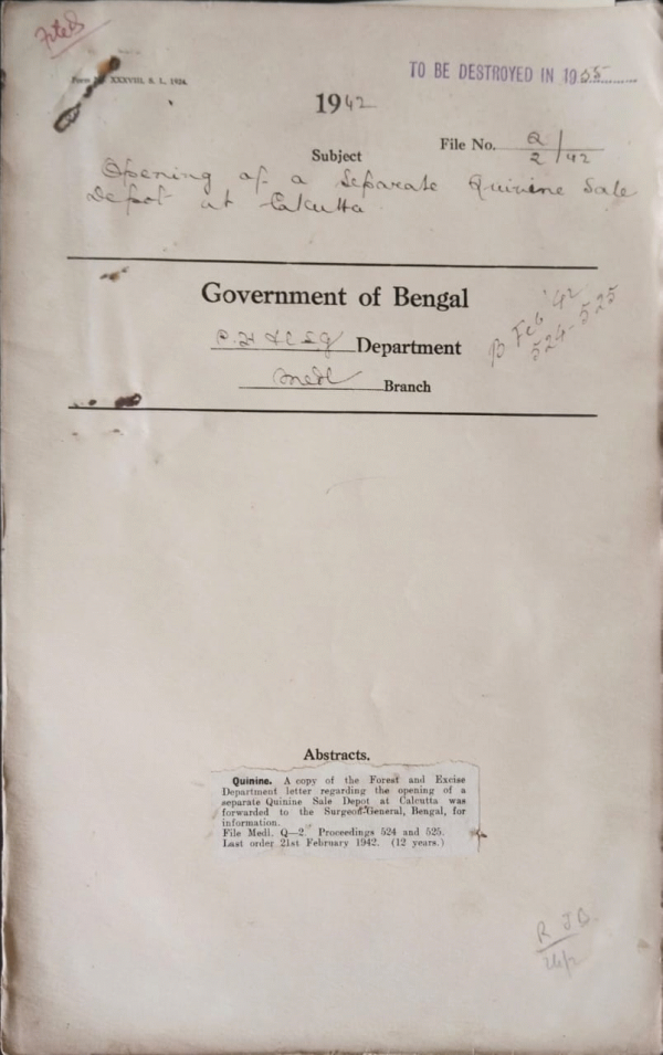 | Rack No. 9, Bundle No. 84, Sl No. 6496 Surrender of savings during the year 1941-42. | Rack No. 9, Bundle No. 84, Sl No. 6497 Case of Criminal lunatic Narandra Nath Das. | Rack No. 9, Bundle No. 84, Sl No. 6498 I.M.S. (Civil) officers Question of Confirmation. | Rack No. 9, Bundle No. 84, Sl No. 6499 Opening of a separate Quinine Sale Department at Calcutta. | Rack No. 9, Bundle No. 84, Sl No. 6500 Working pay to prisoners of War Incidence of. | Rack No. 9, Bundle No. 85, Sl No. 6501 Grant to the Calcutta Medical School. | Rack No. 9, Bundle No. 85, Sl No. 6502 Annual Report on the Medical School of the Burma Govt. |