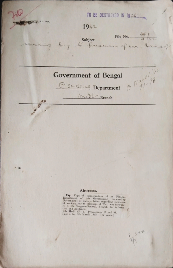 | Rack No. 9, Bundle No. 84, Sl No. 6497 Case of Criminal lunatic Narandra Nath Das. | Rack No. 9, Bundle No. 84, Sl No. 6498 I.M.S. (Civil) officers Question of Confirmation. | Rack No. 9, Bundle No. 84, Sl No. 6499 Opening of a separate Quinine Sale Department at Calcutta. | Rack No. 9, Bundle No. 84, Sl No. 6500 Working pay to prisoners of War Incidence of. | Rack No. 9, Bundle No. 85, Sl No. 6501 Grant to the Calcutta Medical School. | Rack No. 9, Bundle No. 85, Sl No. 6502 Annual Report on the Medical School of the Burma Govt. | Rack No. 9, Bundle No. 85, Sl No. 6503 Rules for the maintenance and Occupation of Circuit Houses in Bengal. |