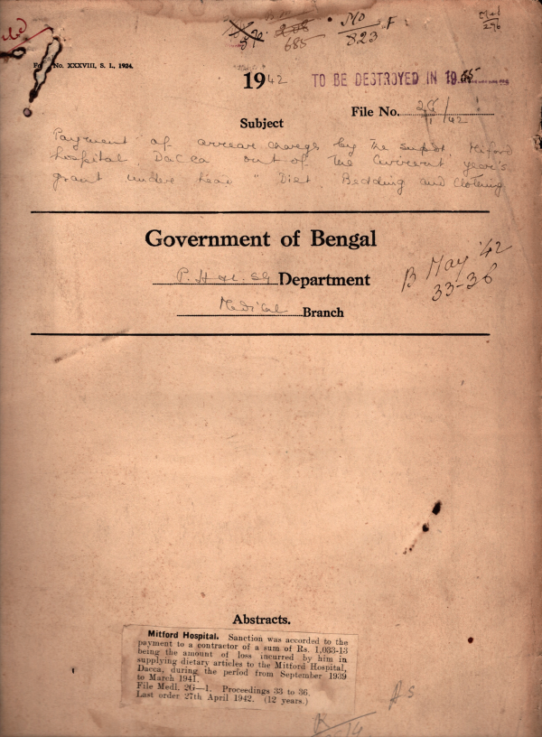 Milford hospital, Dacca payment to the constructor for the supply of rising article during September 1939 to March 1940.