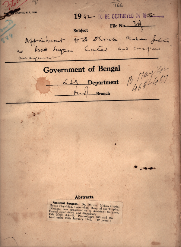 Appointment of Dr. Dhruba Mohan Gupta as Assistant Surgeon Carmichael Hospital for Tropical Diseases.
