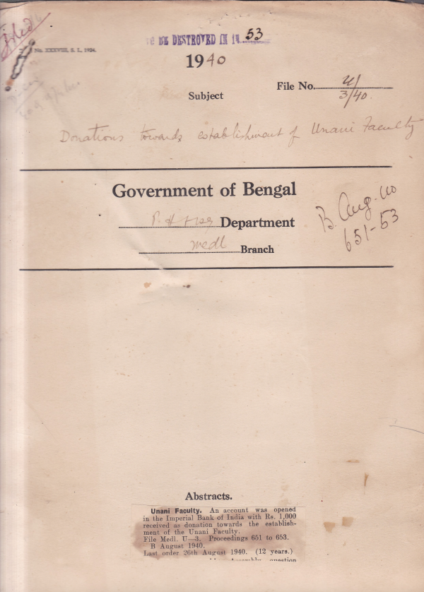 | Rack no. 08, Bundle no. 74, Sl no. 5653 Exchange of Publication with the Orissa Govt. | Rack no. 08, Bundle no. 74, Sl no. 5654 Visit of Prof. Hostelling Consultation with on economic matters. | Rack no. 08, Bundle no. 74, Sl no. 5655 Donations towards establishment of Unani Faculty. | Rack no. 08, Bundle no. 74, Sl no. 5656 Case of Cr. Lunatic Das Gobinda Singh. | Rack no. 08, Bundle no. 74, Sl no. 5657 Agreements relating to lands in the name of state should be re-executed in the name of the Governor. | Rack no. 08, Bundle no. 74, Sl no. 5658 Grant to the Bankura Leper Home. | Rack no. 08, Bundle no. 74, Sl no. 5659 T.A. of member for attending the meeting of the advisory committee. |