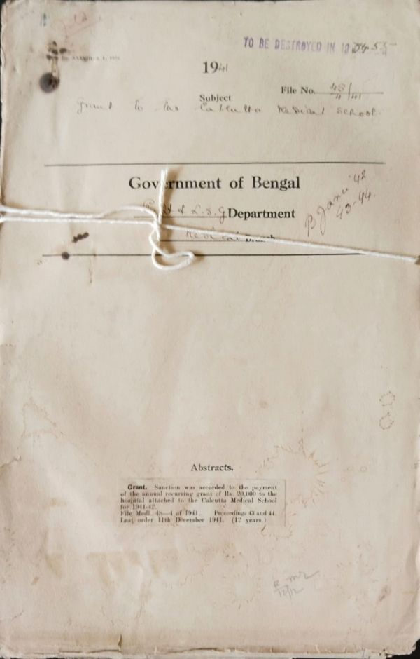 | Rack No. 9, Bundle No. 84, Sl No. 6498 I.M.S. (Civil) officers Question of Confirmation. | Rack No. 9, Bundle No. 84, Sl No. 6499 Opening of a separate Quinine Sale Department at Calcutta. | Rack No. 9, Bundle No. 84, Sl No. 6500 Working pay to prisoners of War Incidence of. | Rack No. 9, Bundle No. 85, Sl No. 6501 Grant to the Calcutta Medical School. | Rack No. 9, Bundle No. 85, Sl No. 6502 Annual Report on the Medical School of the Burma Govt. | Rack No. 9, Bundle No. 85, Sl No. 6503 Rules for the maintenance and Occupation of Circuit Houses in Bengal. | Rack No. 9, Bundle No. 85, Sl No. 6505 Acknowledgment of receipt of a Cheque due to Dr. R.N. Chaudhuri, Assistant Professor School of Tropical Medicine. |