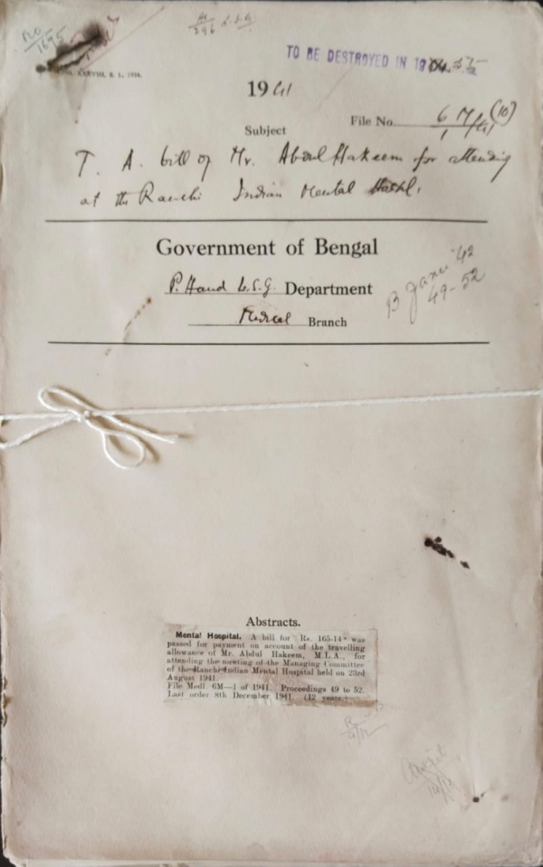 | Rack No. 9, Bundle No. 85, Sl No. 6503 Rules for the maintenance and Occupation of Circuit Houses in Bengal. | Rack No. 9, Bundle No. 85, Sl No. 6505 Acknowledgment of receipt of a Cheque due to Dr. R.N. Chaudhuri, Assistant Professor School of Tropical Medicine. | Rack No. 9, Bundle No. 85, Sl No. 6505 L.A. by the Medical Education Society for the extension of the Carmichael Medical College Hospital. | Rack No. 9, Bundle No. 85, Sl No. 6506 T.A. of Mr. A. Hakim for attending at the Ranchi Indian Mental Hospital. | Rack No. 9, Bundle No. 85, Sl No. 6507 Duars allowance abolition of compensatory allowance for expensiveness of living. | Rack No. 9, Bundle No. 85, Sl No. 6508 Appointment of Clinical Assistant in the Special Departments of the Medical College Hospital. | Rack No. 9, Bundle No. 85, Sl No. 6509 Determination of the age of Mr. Haridas Ganguli, Assistant Chemical Examiner to the govt. of Bengal. |