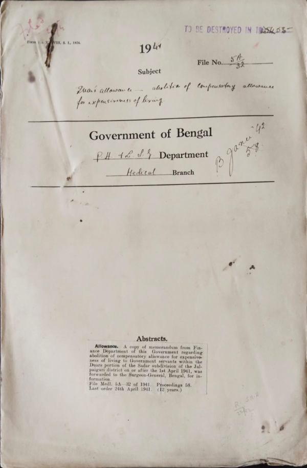 | Rack No. 9, Bundle No. 85, Sl No. 6505 Acknowledgment of receipt of a Cheque due to Dr. R.N. Chaudhuri, Assistant Professor School of Tropical Medicine. | Rack No. 9, Bundle No. 85, Sl No. 6505 L.A. by the Medical Education Society for the extension of the Carmichael Medical College Hospital. | Rack No. 9, Bundle No. 85, Sl No. 6506 T.A. of Mr. A. Hakim for attending at the Ranchi Indian Mental Hospital. | Rack No. 9, Bundle No. 85, Sl No. 6507 Duars allowance abolition of compensatory allowance for expensiveness of living. | Rack No. 9, Bundle No. 85, Sl No. 6508 Appointment of Clinical Assistant in the Special Departments of the Medical College Hospital. | Rack No. 9, Bundle No. 85, Sl No. 6509 Determination of the age of Mr. Haridas Ganguli, Assistant Chemical Examiner to the govt. of Bengal. | Rack No. 9, Bundle No. 85, Sl No. 6510 Grant of the Prince Golam Md. Charitable Dispensaries. |