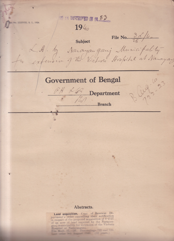 L.A. by Narayanganj Municipality for extension of the Victoria Hospital at Narayanganj.