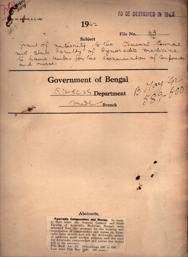 | Rack No. 09; Bundle No. 88 SL No. 6787 Grant to the Jadavpur T.B. Hospital Utilization Certificate in respect of rec.-grant of Rs. 10,000/- | Rack No. 09; Bundle No. 88 SL No. 6788 G.P.F. Rules amendments. | Rack No. 09; Bundle No. 88 SL No. 6789 Procedure for dealing with Proposals by Provincial Govt. adversely affecting officers of Provincial Services. | Rack No. 09; Bundle No. 88 SL No. 6790 Grant of authority to the general council and state faculty of Ayurvedic medicinal to from rules for the examination of compounder and nurses. | Rack No. 09; Bundle No. 88 SL No. 6791 Post of the 2nd Resident Medical Officer, P.G. Hospital. | Rack No. 09; Bundle No. 88 SL No. 6792 Allowance to S.A.S. Dr. Khagendra Nath Basu, Senior Demonstrator of Pathology, Dacca Medical School. | Rack No. 09; Bundle No. 88 SL No. 6793 Extension tenure of appointment of Dr. Md. Refatullah, R.S Eye Hospital, Calcutta. |