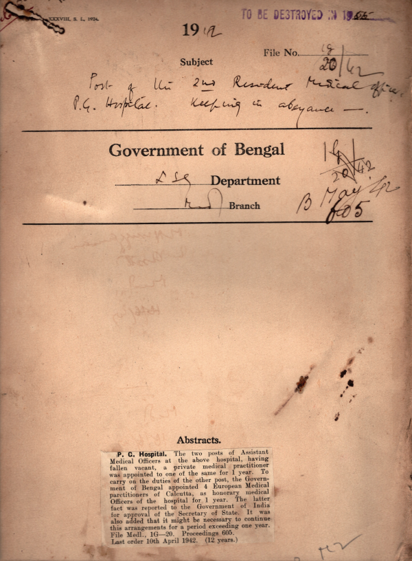 | Rack No. 09; Bundle No. 88 SL No. 6788 G.P.F. Rules amendments. | Rack No. 09; Bundle No. 88 SL No. 6789 Procedure for dealing with Proposals by Provincial Govt. adversely affecting officers of Provincial Services. | Rack No. 09; Bundle No. 88 SL No. 6790 Grant of authority to the general council and state faculty of Ayurvedic medicinal to from rules for the examination of compounder and nurses. | Rack No. 09; Bundle No. 88 SL No. 6791 Post of the 2nd Resident Medical Officer, P.G. Hospital. | Rack No. 09; Bundle No. 88 SL No. 6792 Allowance to S.A.S. Dr. Khagendra Nath Basu, Senior Demonstrator of Pathology, Dacca Medical School. | Rack No. 09; Bundle No. 88 SL No. 6793 Extension tenure of appointment of Dr. Md. Refatullah, R.S Eye Hospital, Calcutta. | Rack No. 09; Bundle No. 88 SL No. 6794 Allowance to Babu Nitish Chenda Guha, teacher of Physics and Chemistry, Jalpaiguri. |