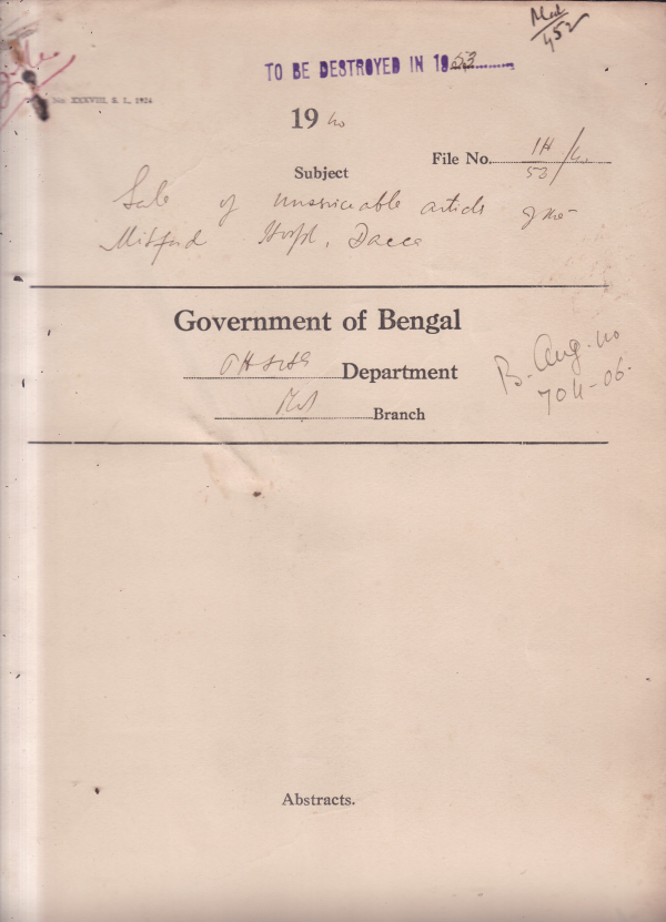 Sale of unserviceable article of the Mitford Hospital, Dacca.