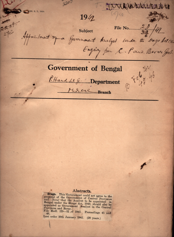 | Rack No. 09; Bundle No. 88 SL No. 6796 Permission of Dr. Anath Bandhu Benerji, House Surgeon, P.G.H. to Cross the 1st E.B. | Rack No. 09; Bundle No. 88 SL No. 6797 Admission of Mr. Kuldeep Chand Kohli in to the Medical College, Calcutta. | Rack No. 09; Bundle No. 88 SL No. 6798 Admission of Military insane in Mental Hospital. | Rack No. 09; Bundle No. 88 SL No. 6799 Appointment of a govt. Analyst under the Drugs Act, 1940. | Rack No. 09; Bundle No. 88 SL No. 6800 Recruitment of Indian Clerks for the Indian Army Corps. | Rack No. 09; Bundle No. 88 SL No. 6801 Transfer of the non-Criminal Mental Patient A. Jabber. | Rack No. 09; Bundle No. 88 SL No. 6802 Additional grant to Civil Surgeon 24 Parganas u/h "Reserve Medical Subordinates." |