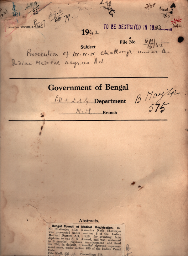 Prosecution of Dr. N.N. Chaterji Under the Indian Medical Degrees Act.