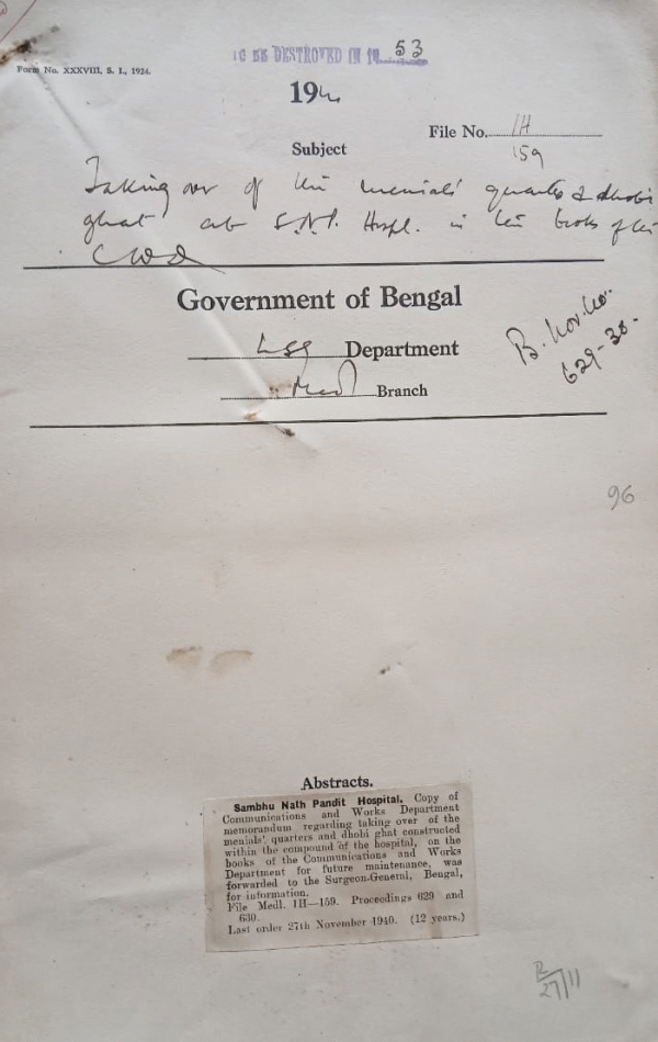 Taking over of the menial's quarters and Dhobi Ghat Constructed with in the Compound of the hospital, on the books of the communications.