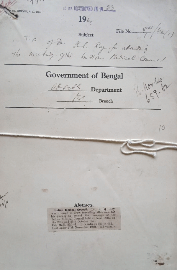 | Rack No. 8, Bundle No. 79 Sl No. 6107 Bengal Services (India Provident Fund) (Sterling Accounts) Rules. | Rack No. 8, Bundle No. 79 Sl No. 6108 Allegation of Power to the Prafulla Chandra Das Gupta Deputy Magistrate and Deputy Collector Darjeeling under Indian Lunacy Act, 1912. | Rack No. 8, Bundle No. 79 Sl No. 6109 Sanction grant of Allowance the Babu Nada Kumar Prodhar, 2nd clerk civil Surgeon's office Darjeeling for doing dual duties. | Rack No. 8, Bundle No. 79 Sl No. 6110 T.A. of Dr. K.S. Roy far attendance the meetings of the Indian Medical Council. | Rack No. 8, Bundle No. 79 Sl No. 6111 Public Service Commission Regarding Conventions relating to the Commission. | Rack No. 8, Bundle No. 79 Sl No. 6112 Application of the Indian Coinage ordinate, 1940 to the Darjeeling district and to the Partially excluded areas of the Mymensingh District. | Rack No. 8, Bundle No. 79 Sl No. 6113 Defense of India Rules supply of copies of orders issued under the High commissioner for India. |