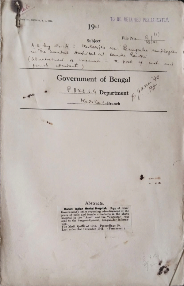 | Rack No. 9, Bundle No. 85, Sl No. 6521 Bengal profession Trades Callings, Employment Taxation Rules. | Rack No. 9, Bundle No. 85, Sl No. 6522 Verification rolls of Nepalese. | Rack No. 9, Bundle No. 85, Sl No. 6523 Charges on account of advertisements for recruitment of Medical Personnel in connection with the war should be from by provincial govt. | Rack No. 9, Bundle No. 85, Sl No. 6524 A.Q. by Dr. H.C. Mukherji regarding Bengal employees in the Mental Hospital at Kanke, Ranchi. | Rack No. 9, Bundle No. 85, Sl No. 6525 Resolutions of the Council amending Rule 8 of the Ethical Rules. | Rack No. 9, Bundle No. 85, Sl No. 6526 Appointment of a Demonstrator of Anatomy in the Medical College Hospitals, Calcutta. | Rack No. 9, Bundle No. 85, Sl No. 6527 Budget Estimate for 1942-43-38 Medicals. |
