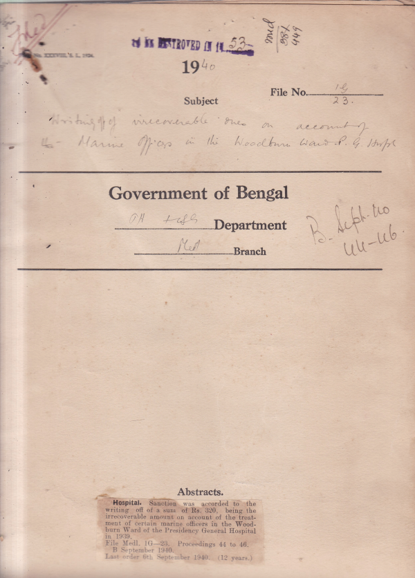 Writing off irrecoverable amount on account of the marine officers in the Woodburn ward of the P.G. Hospital.