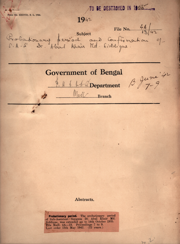 Probationary Period and confirmation of S.A.S. Dr. Abul Khair Md. Siddique.