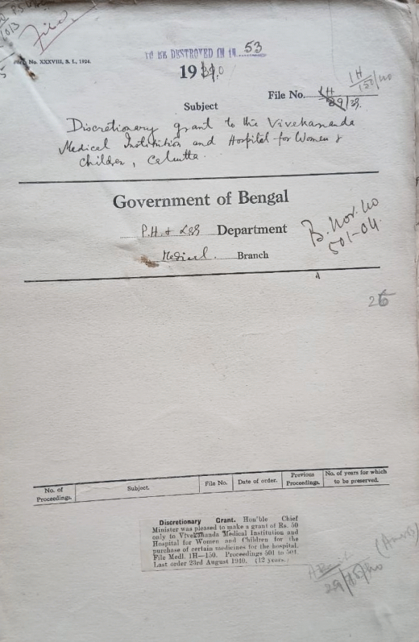 Discretionary grant to this Vivekananda medical institution and Hospital for women and children, Calcutta.