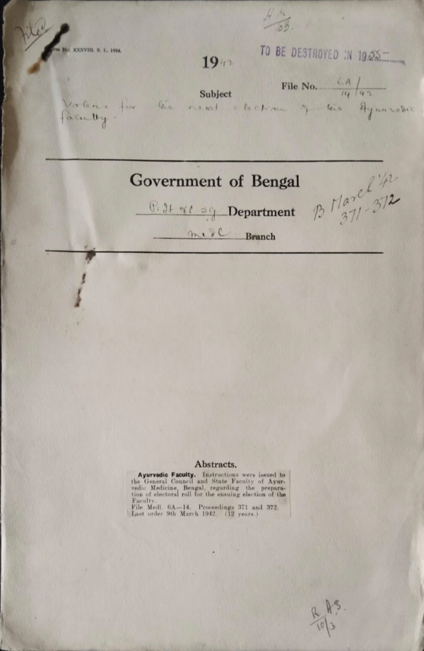 | Rack No. 9, Bundle No. 85, Sl No. 6559 Purchase o benches, Charts, books etc. required for training by Victoria Hospital, Darjeeling. | Rack No. 9, Bundle No. 85, Sl No. 6560 Additional grant to P.G. Hospital u/h. "Medical and Surgical Requisites. | Rack No. 9, Bundle No. 85, Sl No. 6561 Additional grant of Rs. 60,000/- to the Medical College Hospitals u/h "Medical and Surgical requisites". | Rack No. 9, Bundle No. 85, Sl No. 6562 Voters for the next election of the Ayurvedic faculty. | Rack No. 9, Bundle No. 85, Sl No. 6563 Relaxation of Rule 71 of govt. Medical School Rules in favour of Babu Kripasindhu Saha. | Rack No. 9, Bundle No. 85, Sl No. 6564 Relaxation of Rule 71 of govt. Medical School Rules in favour of Babu Kamals Bhattacharjee. | Rack No. 9, Bundle No. 85, Sl No. 6565 Relaxation of Rule 71 of govt. Medical School Rules in favour of Babu Atindra Mohan Chandra and Others. |
