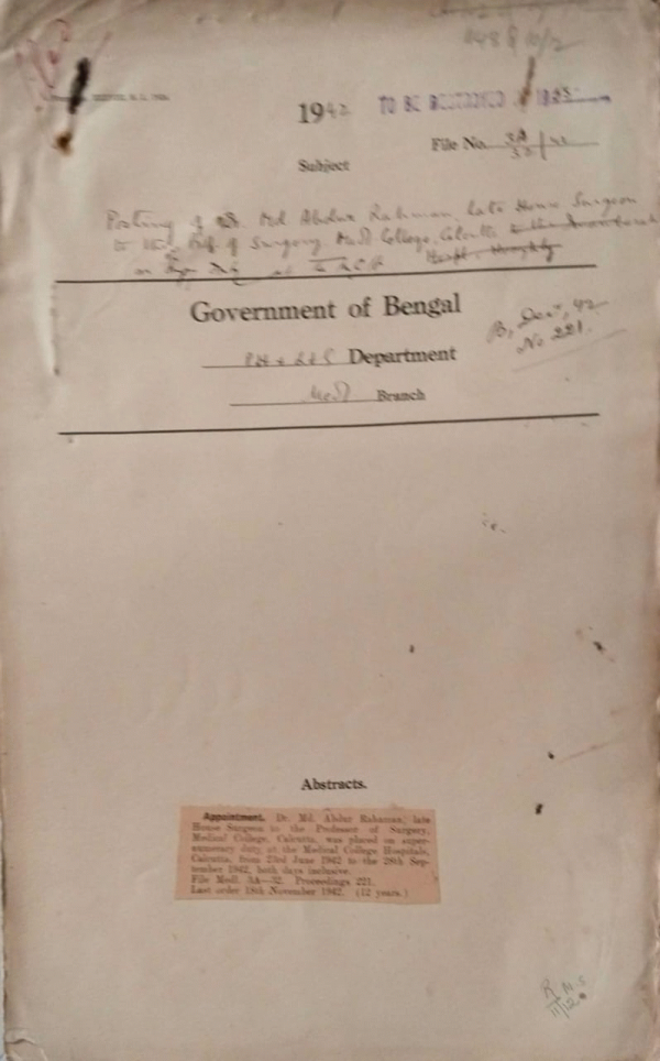 | Rack No. 09, Bundle No. 98, SI No. 7616 Singing of requisitions upon changes on behalf of govt. new procedure for | Rack No. 09, Bundle No. 98, SI No. 7617 Verification of the accounts under head "XXVII" and 38 Medical for year 1941-42. | Rack No. 09, Bundle No. 98, SI No. 7618 Continuance of the policing of grant of subsidies of Thana and village dispensaries during the year 1943-44 additional provision for grant. | Rack No. 09, Bundle No. 98, SI No. 7619 Posting of Dr. Md. Abdul Rahman Late House Surgeon to the Prof. of Surgery medical College Calcutta. | Rack No. 09, Bundle No. 98, SI No. 7620 Grant to C.H. N.9 for medical additional Provision for 1943-1944 Colonies. | Rack No. 09, Bundle No. 98, SI No. 7621 Grant to the Indian institute for medical research. | Rack No. 09, Bundle No. 98, SI No. 7622 Grant of scholarship to Muslim and schemed caste student of the medical College, Calcutta. |