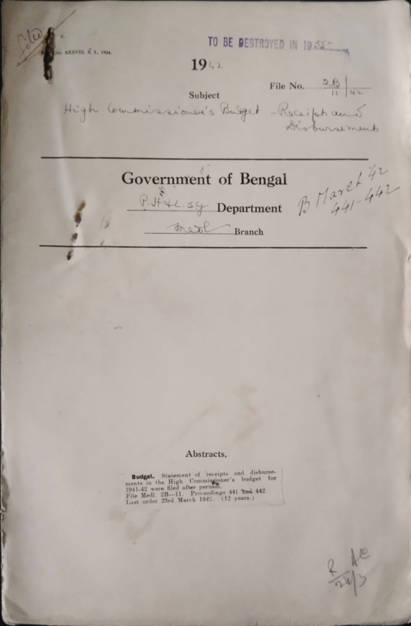 | Rack No. 9, Bundle No. 85, Sl No. 6574 A.Q. by Mr. Rasiklal Biswas M.L.A. regarding the Principal of not giving extension to any officer. | Rack No. 9, Bundle No. 85, Sl No. 6575 A.Q. by Mr. Manir Uddin Ahmed regarding govt. grant to thana Dispensaries. | Rack No. 9, Bundle No. 85, Sl No. 6576 A.Q. by Mvi. Maniruddin Ahmed regarding govt. grant to Village dispensaries. | Rack No. 9, Bundle No. 85, Sl No. 6577 High Commissioner Budget and Disbursements. | Rack No. 9, Bundle No. 85, Sl No. 6578 Revocation of Surrender under 38 Medical during theyar 1941-42. | Rack No. 9, Bundle No. 85, Sl No. 6579 Additional grant to H/E's Staff dispensary u/h "Compensation for the dearness of food". | Rack No. 9, Bundle No. 85, Sl No. 6580 Surrender of grants in the General Administration budget for 1941-42. |
