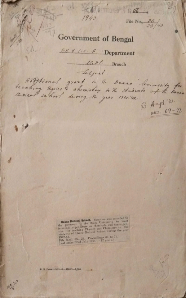 Additional grant to the Dacca university for teaching physics to chemistry to the Students of the Dacca medical school during the year 1941-42.