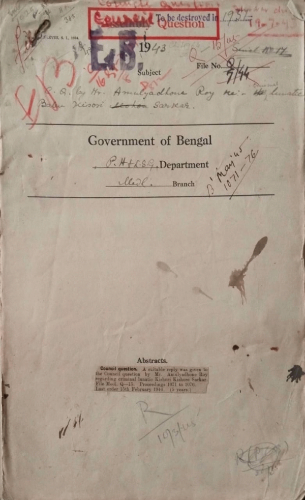 C.Q. by Mr. Amulya dhone Ray reducing lunatic Kishore Sarkar.