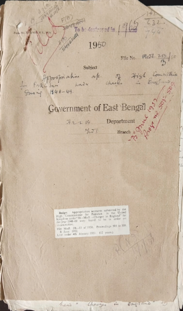 | Rack No. 9, Bundle No. 111, Sl No. 9131 Construction of the post-mortem shed attached to the dispensary at Bandarban in Chittagong Hill Tracts. | Rack No. 9, Bundle No. 111, Sl No. 9132 Petition from Mvi. Rurul Haq, Ex-Clerk, Civil Surgeon office, Khulna. | Rack No. 9, Bundle No. 111, Sl No. 9133 Confirmation of Dr. Z Ahmed as Assistant Surgeon. | Rack No. 9, Bundle No. 111, Sl No. 9134 Creation of 15 temporary posts of Assistant Surgeon in the E.P.M.S. (Upper) in Dacca. | Rack No. 9, Bundle No. 111, Sl No. 9135 Annual grant and Subvention by government for medical and public Health Service Mymensingh. | Rack No. 9, Bundle No. 111, Sl No. 9136 Leave of Dr. Md. Basirullah, late Assistant Surgeon, Noakhali Sadar Hospital. | Rack No. 9, Bundle No. 111, Sl No. 9137 X-ray charges P.A.S. (Ex. I.C.S) Br. X-Rayed in military, Hospital. |