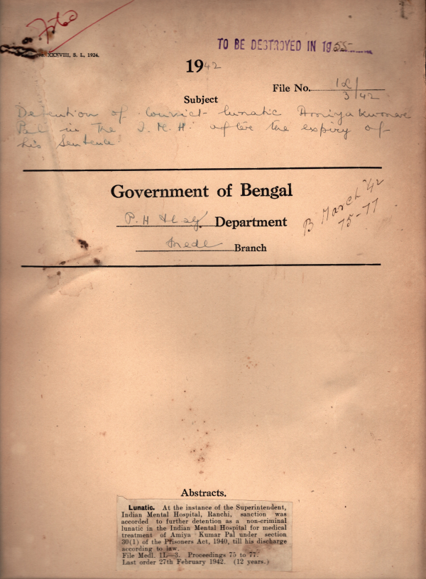 Detention of convict lunatic Amiya Kumar Pal in the I.M.H. after expires of his sanction.