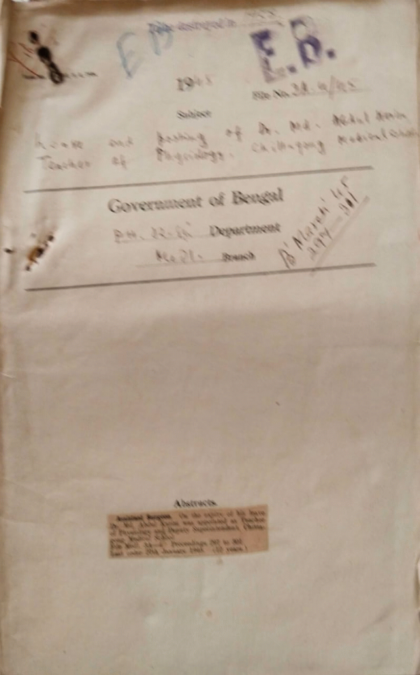 Leave and posting of Dr. Md. A. Karim teacher of physiology Chittagong medical School.