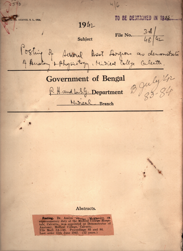 | Rack No. 09; Bundle No. 89 SL No. 6896 Posting of Dr. Md. Lutfar Rahman to the Jamalpur Sub-Division and Dispensary. | Rack No. 09; Bundle No. 89 SL No. 6897 Admission of Miss. Muriel Brown, a Sussex Trust Scholar into Medical College, Calcutta. | Rack No. 09; Bundle No. 89 SL No. 6898 Allowance of Dr. A.K. Datta Gupta for acting as civil surgeon & Superintendent of Jail, Jalpaiguri. | Rack No. 09; Bundle No. 89 SL No. 6899 Posting of several Assistant Surgeon as demonstrator of Anatomy Physiology, Medical College, Calcutta. | Rack No. 09; Bundle No. 89 SL No. 6900 Dispensary at Raniganj Inspection note of Raniganj Municipality | Rack No. 09; Bundle No. 89 SL No. 6901 Maintenance charge etc. of the mental patient Abdur Jabbar Darbesh for the Period of his stay in the Joypur Mental Hospital. | Rack No. 09; Bundle No. 89 SL No. 6902 Proposal for recovery of furniture rent and Electric Charges from the Catered of the Students Restaurant of the Medical College, Calcutta. |