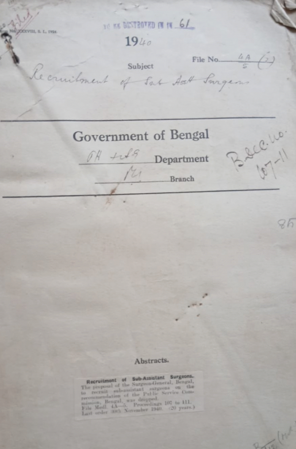 | Rack No. 8, Bundle No. 80 Sl No. 6182 Allocation of some beds in the Tuberculosis ward to Dr. A.C. Ukil visiting Physician in the Change or the Chest Department medical Collage Hospital. | Rack No. 8, Bundle No. 80 Sl No. 6183 Rules Regulations the grant of Casual leave and of Permission to leave station. | Rack No. 8, Bundle No. 80 Sl No. 6184 National Welfare Unit. | Rack No. 8, Bundle No. 80 Sl No. 6185 Recruitment of Sub-Assistant Surgeons. | Rack No. 8, Bundle No. 80 Sl No. 6186 Travelling allowance of Maulvi Abdul Hakim meet in the Indian Mental Hospital. | Rack No. 8, Bundle No. 80 Sl No. 6187 Budget provision for clerk in the bacteriological Laboratories medical college Calcutta. | Rack No. 8, Bundle No. 80 Sl No. 6188 All India Institute of hygiene and public health collaboration of the chest department of the medical college, Calcutta in providing instruction in tuberculosis to the D.P. Lt. Students. |