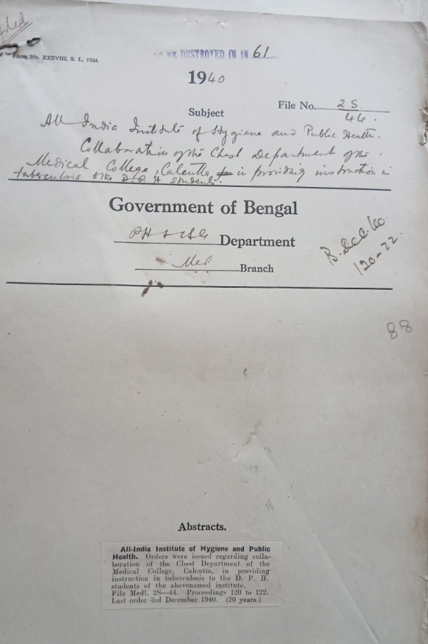 All India Institute of hygiene and public health collaboration of the chest department of the medical college, Calcutta in providing instruction in tuberculosis to the D.P. Lt. Students.