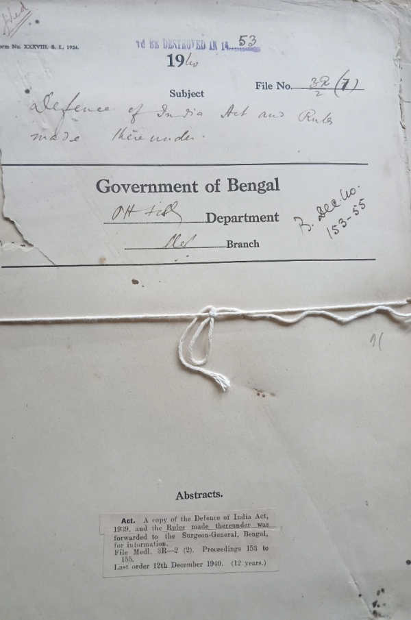 | Rack No. 8, Bundle No. 80 Sl No. 6188 All India Institute of hygiene and public health collaboration of the chest department of the medical college, Calcutta in providing instruction in tuberculosis to the D.P. Lt. Students. | Rack No. 8, Bundle No. 80 Sl No. 6189 Summary of instructions regarding the working of the national welfare units. | Rack No. 8, Bundle No. 80 Sl No. 6190 Provision of asbestos ceilings to the roof of the Mackenzie and wood burn words attached to the Campbell Hospital at Sealdah. | Rack No. 8, Bundle No. 80 Sl No. 6191 Defense of India Act and rules made there under. | Rack No. 8, Bundle No. 80 Sl No. 6192 Remission of contribution payable by Barisal Sad on Hospital on account of the services of the assistant Surgeon lent to it. | Rack No. 8, Bundle No. 80 Sl No. 6193 Budget estimate Mohsin endowment fund. | Rack No. 8, Bundle No. 80 Sl No. 6194 Government of Bengal Department of Public Health and Local Self government, Medical. |