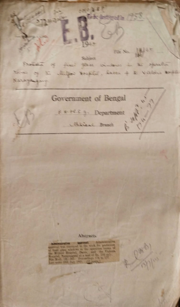 Protection of fixed glass windows in the operation rooms in the Milford hospital, Dacca in the Victoria hospital Narayangonj.