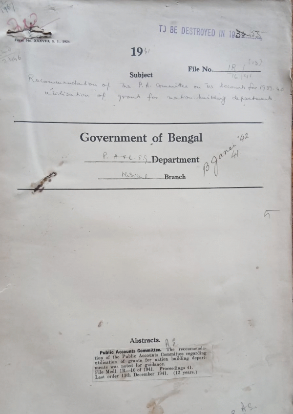 Recommendation of the P.A. Committee on the accounts for 1939-40 utilization of grants for nation building department.