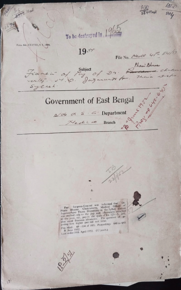 | Rack No. 9, Bundle No. 111, Sl No. 9160 Purchase of X-ray Films etc without Calling for quotation. | Rack No. 9, Bundle No. 111, Sl No. 9161 Purchase of articles without calling for tenders. | Rack No. 9, Bundle No. 111, Sl No. 9162 Sanction for the Advertisement charges for the Admission of compounders in the Dacca Medical School. | Rack No. 9, Bundle No. 111, Sl No. 9163 Public Health and local self government, Medical Branch, Dacca. | Rack No. 9, Bundle No. 111, Sl No. 9164 Release of mental patient Erajat Ullah. | Rack No. 9, Bundle No. 111, Sl No. 9165 Restriction on medical officers in govt. employ of criticism of govt. decisions polices. | Rack No. 9, Bundle No. 111, Sl No. 9166 Estimate of Additional requirement of Stationery and Forms for 6 years beginning from 1952-53. |