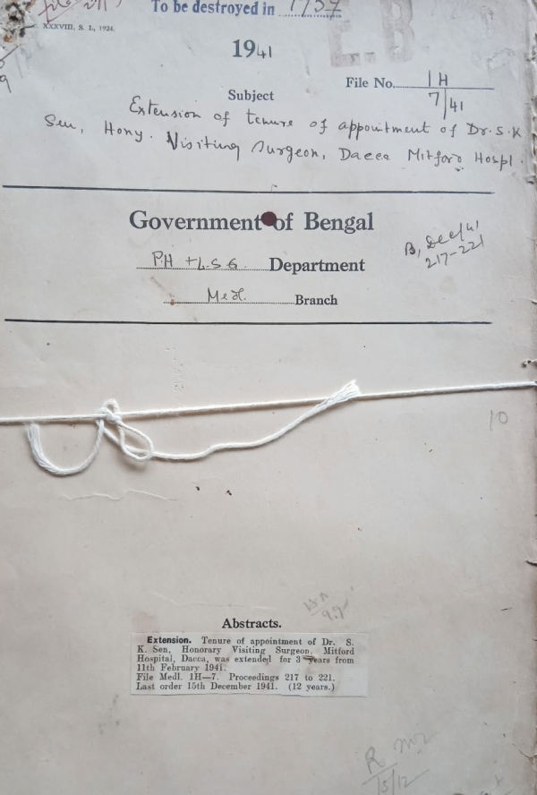 Extension of tenure of appointment of S.K. Sen Honorary visiting Surgeon Dacca Mitford Hospital.