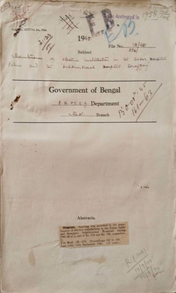 Maintenance of electric installation in the Sadar Hospital Pabna and the Sab. Divisional Hospital Serajgonj.
