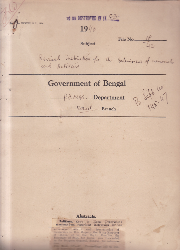 | Rack no. 08, Bundle no. 75, Sl no. 5787 Free supply of Anti-rabic Vaccine of the district board of Tippera. | Rack no. 08, Bundle no. 75, Sl no. 5788 Exclusion from Govt. Service. | Rack no. 08, Bundle no. 75, Sl no. 5789 Deputation of three Civil Assistant Surgeons to the post graduate course of training. | Rack no. 08, Bundle no. 75, Sl no. 5790 Revised instruction for the submission of memorials petitions. | Rack no. 08, Bundle no. 75, Sl no. 5791 A.Q. by Mr. Paran Roy regarding I.M.S. & I.M.D. officers holding civil posts in the Medical Department. | Rack no. 08, Bundle no. 75, Sl no. 5792 Increase in the Number of Nurses in the medical college Hospital, Calcutta. | Rack no. 08, Bundle no. 75, Sl no. 5793 I.M.S. officers belonging to the war Reserve contribution payable by the Central Govt. |
