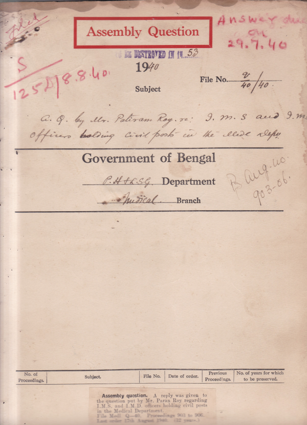 A.Q. by Mr. Paran Roy regarding I.M.S. & I.M.D. officers holding civil posts in the Medical Department.