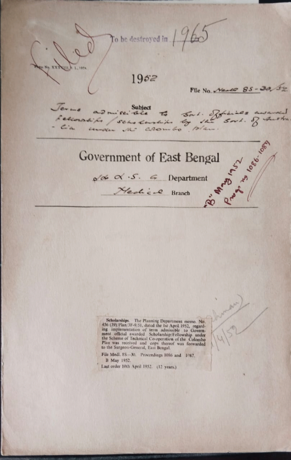 | Rack No. 9, Bundle No. 111, Sl No. 9191 Writing off of the unrealizable arrear Subscription ant to store off of the names of the Defaulting Subscribers of the Civil Hospital, Sylhet. | Rack No. 9, Bundle No. 111, Sl No. 9192 Appointment of a committee for secreting of tenders and selection of contractors for supply of dietary articles to the state Hospital. | Rack No. 9, Bundle No. 111, Sl No. 9193 Improvement to the Sub-Divisional Hospital, Ramgarh in the District of Chittagong Hill Tracts govt. sanction of | Rack No. 9, Bundle No. 111, Sl No. 9194 Implementation of terms admissible to government officials awarded scholarship fellowships under the scheme of technical cooperation of the Calombo Plan. | Rack No. 9, Bundle No. 111, Sl No. 9195 Retention of 16 male nurses in the Mitford Hospital Dacca. | Rack No. 9, Bundle No. 111, Sl No. 9196 Political movement by govt. Servant. | Rack No. 9, Bundle No. 111, Sl No. 9197 Retention of posts of 2 night guards. |
