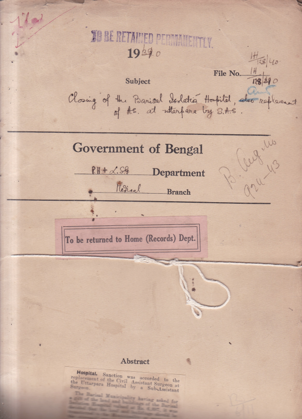Closing of the Barisal Isolation Hospital also replacement of A.S. at Uttarpara by S.A.S.