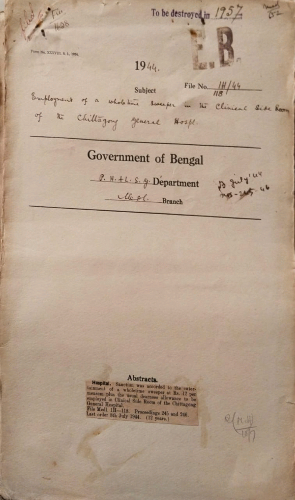 Employment of a whole time Sweeper in the Clinical Side room of the Chittagong Hospital.